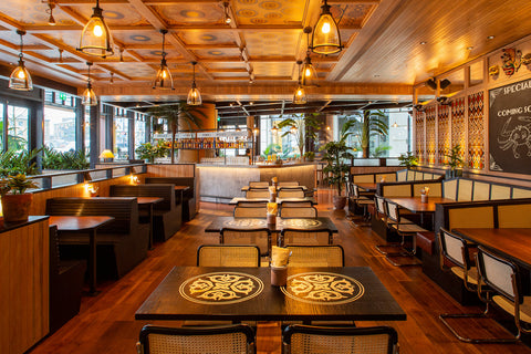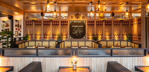 Welcoming guests will be a centrepiece iron-clad concrete bar, complemented by warm, terracotta-toned floors throughout the main dining area. Batik-patterned designs adorn the ceilings, and the walls are decorated with traditional hand-loom fabric panels woven exclusively for Hoppers by Selyn, Sri Lanka’s only Fair Trade guaranteed company and retailer working with and empowering weavers and artists in local villages.